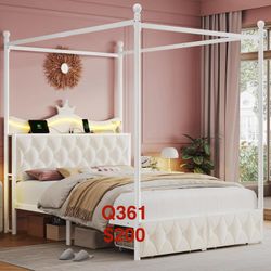 Keyluv Queen Size Upholstered LED Canopy Bed Frame with Charging Station and Drawer Q361$200Duluth, GA