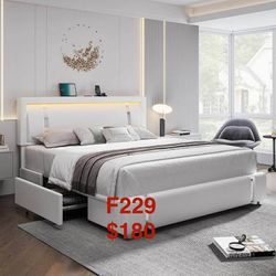 Full Size Bed Frame with RGB LED Lights Headboard & 2 Storage Drawers F229$180Duluth, GA