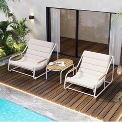 💞 Set of 3 outdoor loungers, patio loungers with acacia side table, pool chairs for lawn, terrace, beach (beige and white) $ 120$120Gillem Enclave, GA