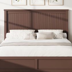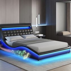 Fameill Queen Size LED Bed Frame with Bluetooth Speaker, PU Leather Upholstered Platform Bed Frame with Charging Station, Modern Wave-Like Curve, Low $250Smoke Rise, GA