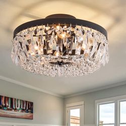 Crystal Basket Flush Mount Chandelier – Matte Black Ring & Clear Crystal Drops$60Tucker, GA