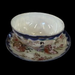 Antique Handpainted cup and saucer Geisha in Garden 1860s New $35Snellville, GA
