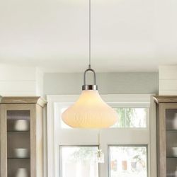 Ribbed Glass Kitchen Island Pendant Light – Brushed Nickel Bell Shade Fixture$45Tucker, GA