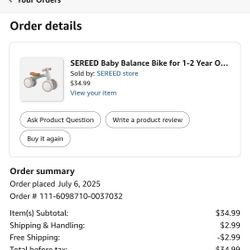 SEREED Baby Balance Bike for 1 Year Old Boys Girls 12-24 Month$20Decatur, GA