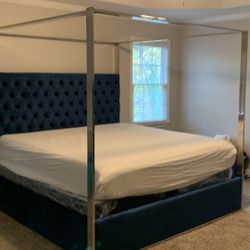 King Size Tufted Velvet Platform Canopy Bed w Chrome Trim $995Jonesboro, GA
