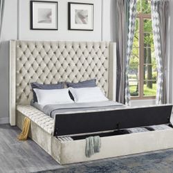 King Size Dark Gray Tufted Velvet Platform Storage Bed $899Jonesboro, GA