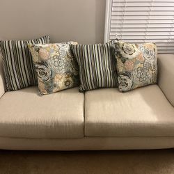 Beige/ White Couch, Used, With Pillows, Holds 2$140Senoia, GA