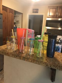 Mixed water holders glass and plastic 14 piece$15Lilburn, GA