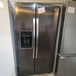 Black Stainless Steel Whirlpool Refrigerator $450Snellville, GA