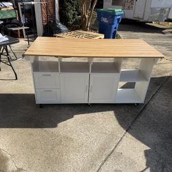 FUFU & GAGA - Rolling Buffet Sideboard Cabinet with Expandable Countertop, Storage Shelves and Drawers for Kitchen and Dining Room - White & Wooden$250Atlanta, GA