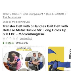 Medical King Transfer Belt Gait Belt With 6 Handles With Release Metal Buckle $25Hampton, GA