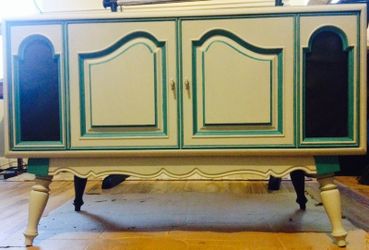 Farm style Console Whiteish grey and teal$150Decatur, GA