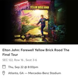 3rd row Floor Seats - Elton John in Atlanta$1,500Flowery Branch, GA