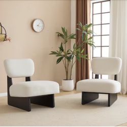 SET OF 2 White and Black Polyester Upholstered Lounge Chair with Rubber Wood Base - Brand New$135Rex, GA