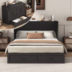 Queen Murphy Bed with Charging Station, Farmhouse Murphy cabinet with Storage Drawer & Foldable Platform (Black) 299$299Gillem Enclave, GA