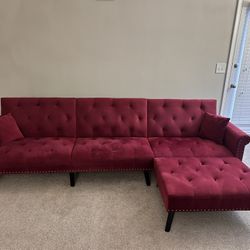 Red Velvet Futon Sofa with Ottoman Tufted Nailhead Trim-Must Pickup(Cash Only)$200Atlanta, GA