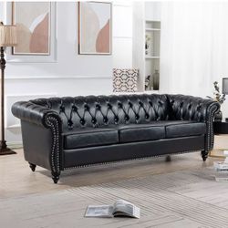 Leather Sofa, Upholstered PU Sofa with Tufted Back, Classic 3 Seater Leather Couch , Black $400$400Dunwoody, GA