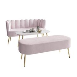 Castle Place Modern Luxury Upholstered Velvet Love Seat with Bench and Coffee Table, Light Pink$199Duluth, GA