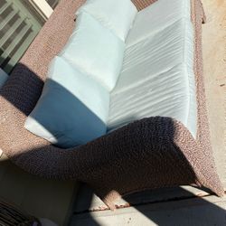 Rattan Wicker Couch With Restoration Hardware Cushions$200Kennesaw, GA