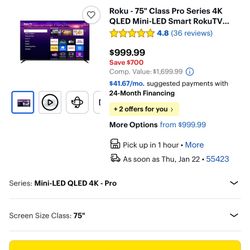 Roku 75” Class Pro Series 4k$700Atlanta, GA