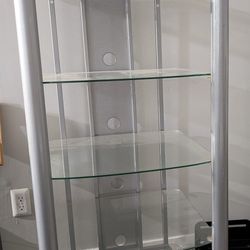 This is a VTI Manufacturing AGR404S 4 glass shelves AV stand with silver poles. $80Lithia Springs, GA