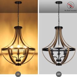 Rustic Farmhouse Wagon Wheel Chandelier – Wood Grain & Matte Black 5-Light Ceiling Fixture$50Tucker, GA