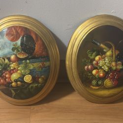 2 Antique Wine & Fruit Oval Convex Baroque Style Still Life Oil Painting On Wood$350Jonesboro, GA