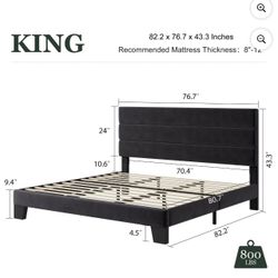 King Platform Bed Frame with Velvet Upholstered Headboard - Black$200Atlanta, GA