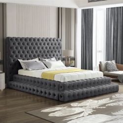 ๐คฉ Brand new grey upholstered tufted platform king & queen size bed frame - Opt mattress | Pay after delivery ๐$450Atlanta, GA