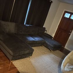 Velvet Black Tufted Sectional with Silver Trim$650Mcdonough, GA