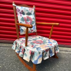 Wooden Rocker Wide Arm Chair With Gray Cushions $75Gillem Enclave, GA