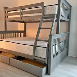 BUNK BEDS Twin Over Full Bunk Bed In Grey FREE MATTRESSES$899Atlanta, GA