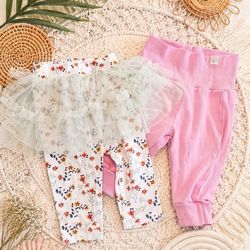 Baby Floral Leggings with Mint Tulle Skirt & Pink Knit Pants 0-3 Months$4Savannah, GA