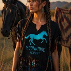Moon ridge Academy Black Fringe T-Shirt Graphic Tee Size S Women's Western$5Savannah, GA