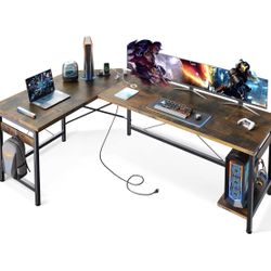 Dark Brown Wood / Black L-Shaped Desk With Power Outlets$100Savannah, GA