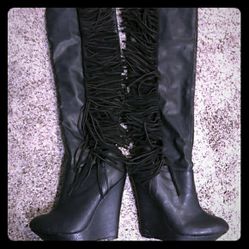 Colin Stuart black leather Fringe boots size 10$50Guyton, GA