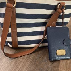 Michael Kors Stripped Cognac White And Nacy Purse And Michael Kors Wallet$50Guyton, GA