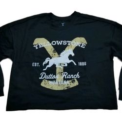 Women's Yellowstone Dutton Ranch Montana Cropped Black Sweatshirt Shirt XL Horse