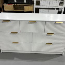 M-New (Minor Damage) White 7 Drawer Dresser for Bedroom, 55” Wide Fluted Dresser with Gold Handles, Modern Chest of Drawer for Bedroom, Closet, Living$175Morrow, GA