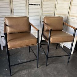 Barstools Set of 2, 26" H Upholstered Counter Height Bar Stools with Wood Armrests and Metal Legs, Faux Leather in Saddle Brown$210Atlanta, GA