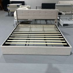 M-New King Size Lift Up Storage Bed Frame, Linen Upholstered King Platform with Button Tufted Wingback Headboard and Under-Bed Storage, Hydraulic Supp$145Morrow, GA