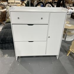 M-(Damages)New Wooden Shoe Storage Cabinet, Freestanding Shoe Cabinet with 2 Flip Drawer & Door, Hidden Shoe Organizer for Entryway, Hallway & Living $95Morrow, GA