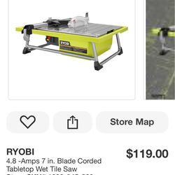 RYOBI 4.8 -Amps 7 in. Blade Corded Tabletop Wet Tile Saw$50Tucker, GA