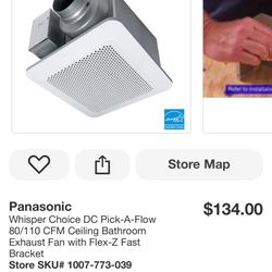 Panasonic Whisper Choice DC Pick-A-Flow 80/110 CFM Ceiling Bathroom Exhaust Fan with Flex-Z Fast$100Tucker, GA