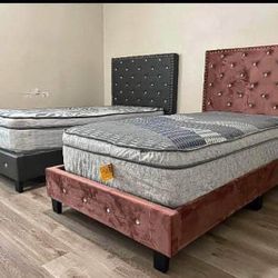 AVAILABLE IN GRAY, PINK AND BLACK! BRAND NEW 2 TWIN BED FRAMES AND MATTRESSES$580Union City, GA