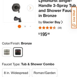 Glacier Bay Lyndhurst Bronze 9000 Series Tub Combo$125Ellenwood, GA
