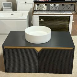 Bathroom Vanity with Sink 36 Inch, Floating Modern Vanity with Vessel Sink, Fluted Bathroom Vanity Cabinet with 2 Doors with Metal Trim, white Round S$260Decatur, GA