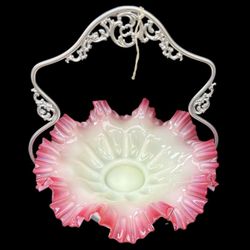 Cranberry Pink Silvercrest Ruffled Uranium Glass Antique Brides Basket$350Snellville, GA