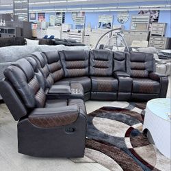 Channel tufted Brown 3 Pc Power reclining Sectional w/speaker & console$1,899Atlanta, GA