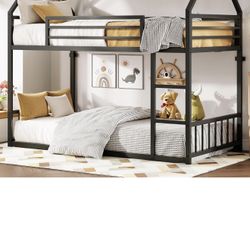 LIKIMIO Bunk Bed Twin XL Over Twin XL, Metal Bunk Bed Frame with Ladder and Guardrail, House Shaped$130Riverdale, GA